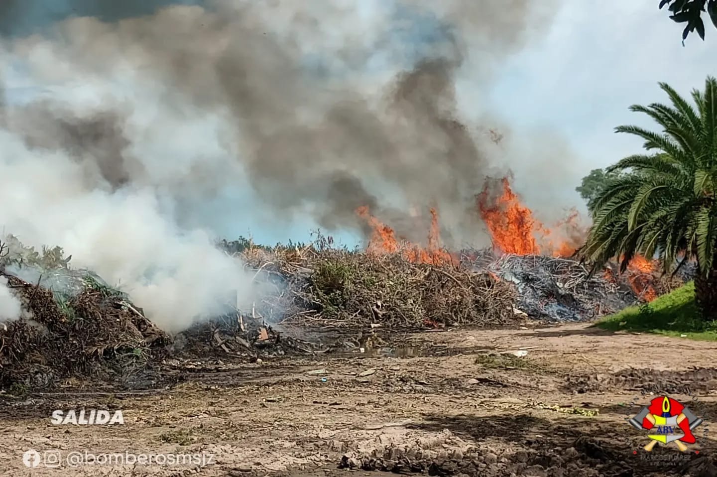 A las 10 horas de ayer concurrieron al predio municipal de Parques y Paseos, sobre calle Los Piamonteses, por un incendio que se producía en el depósito de ramas.