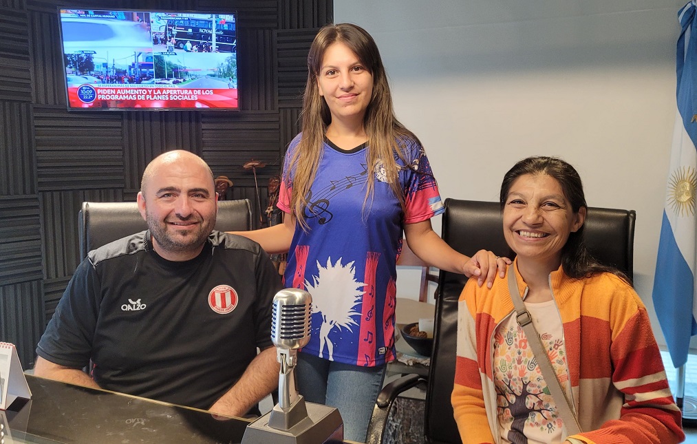 Alejandro Batigelli, vicepresidente del club Argentino, junto a dos integrantes de la comparsa Lenora dieron detalles del evento que arranca a las 21 horas en Pellegrini y General Paz con entrada gratuita.