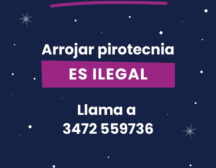 Con el objetivo de evitar el uso ilegal de estos elementos durante las celebraciones de fin de año, se ha dispuesto un teléfono para denuncias: 3472 559736. Desde el municipio, solicitan la colaboración de los vecinos para mantener un entorno seguro y libre de pirotecnia.