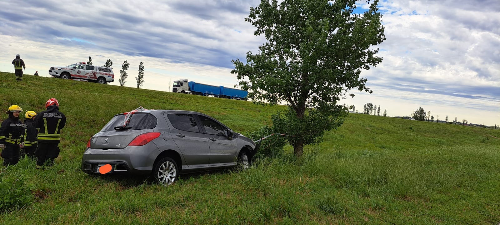 El cuerpo de Bomberos Voluntarios de Armstrong acudió esta mañana a las 9,30 hs, a un accidente ocurrido en el kilómetro 374 de la Autopista, mano a Córdoba.