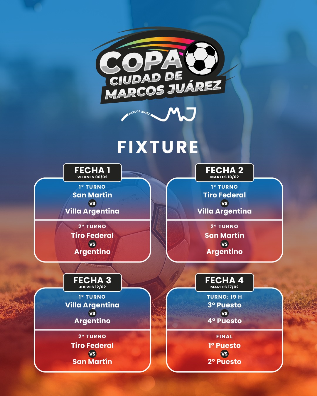 El próximo 6 de febrero comienza la Copa ciudad de Marcos Juárez de fútbol edición 2026.