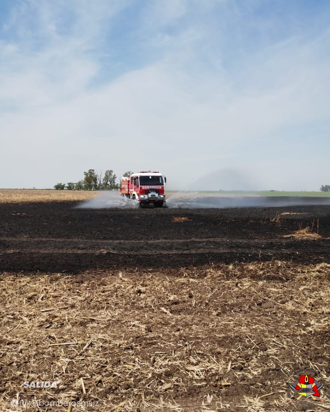 En horas del mediodía de hoy, la Asociación de Bomberos Voluntarios de Marcos Juárez intervino en un incendio de rastrojo registrado en un campo ubicado a unos 12 kilómetros al sur de la localidad.
