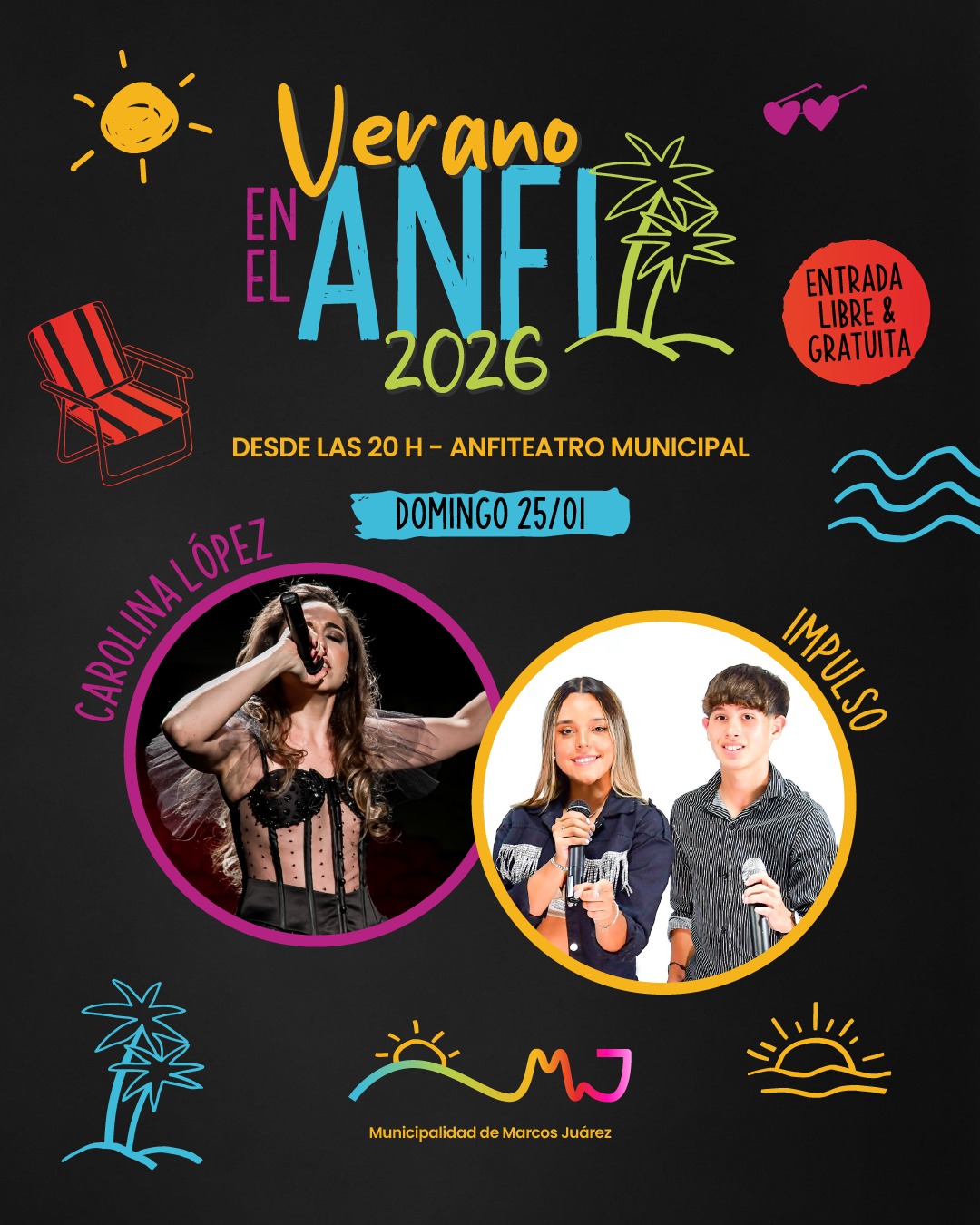 El programa "Verano en el Anfi" volvió a deleitar a los habitantes de Marcos Juárez con una jornada llena de música y baile en el Anfiteatro Municipal.