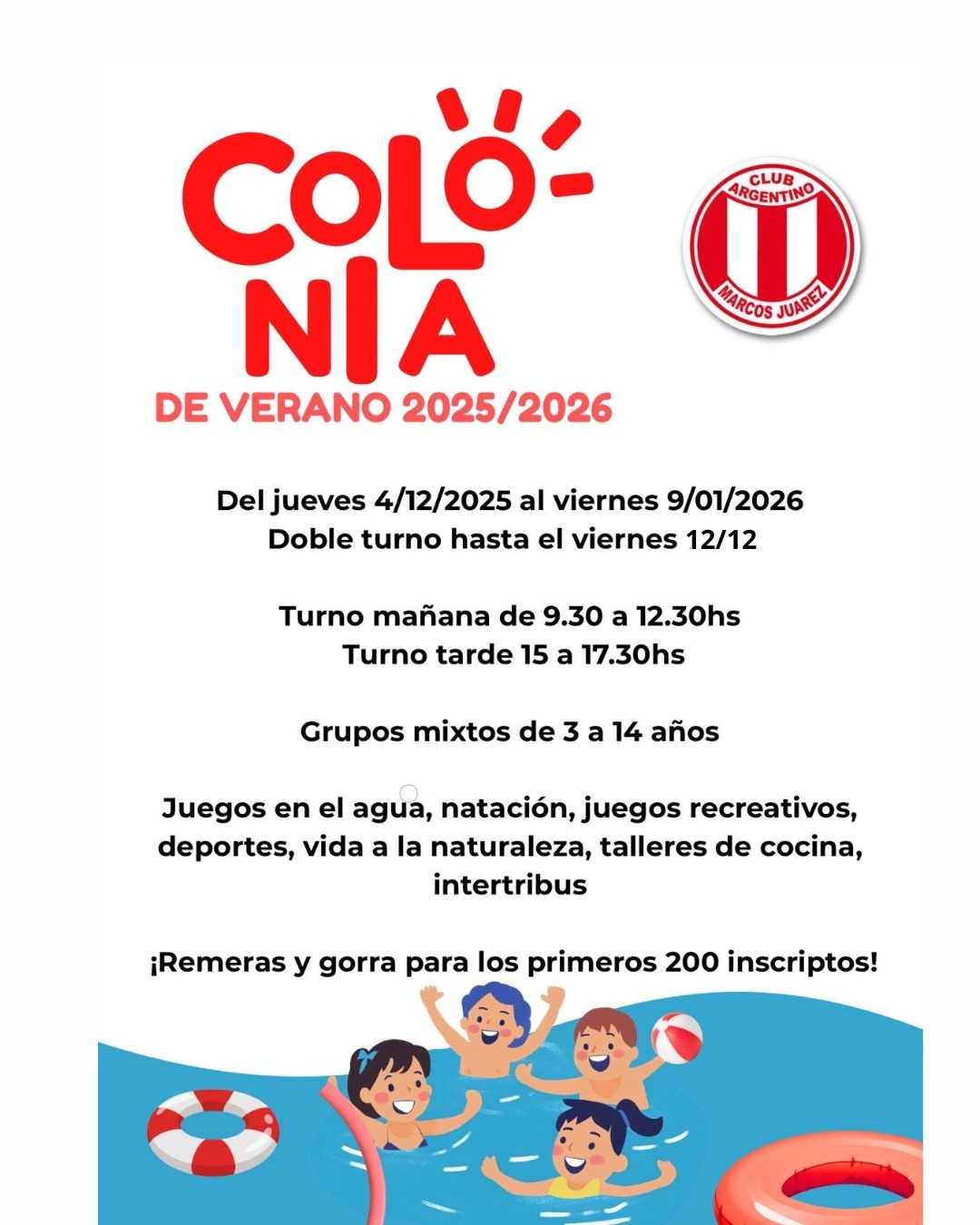 El Club Argentino de Marcos Juárez se prepara para una nueva edición de su tradicional Colonia de Verano, una actividad que año tras año convoca a cientos de chicos y chicas para vivir jornadas de recreación, deporte, juegos acuáticos y contacto con la naturaleza.