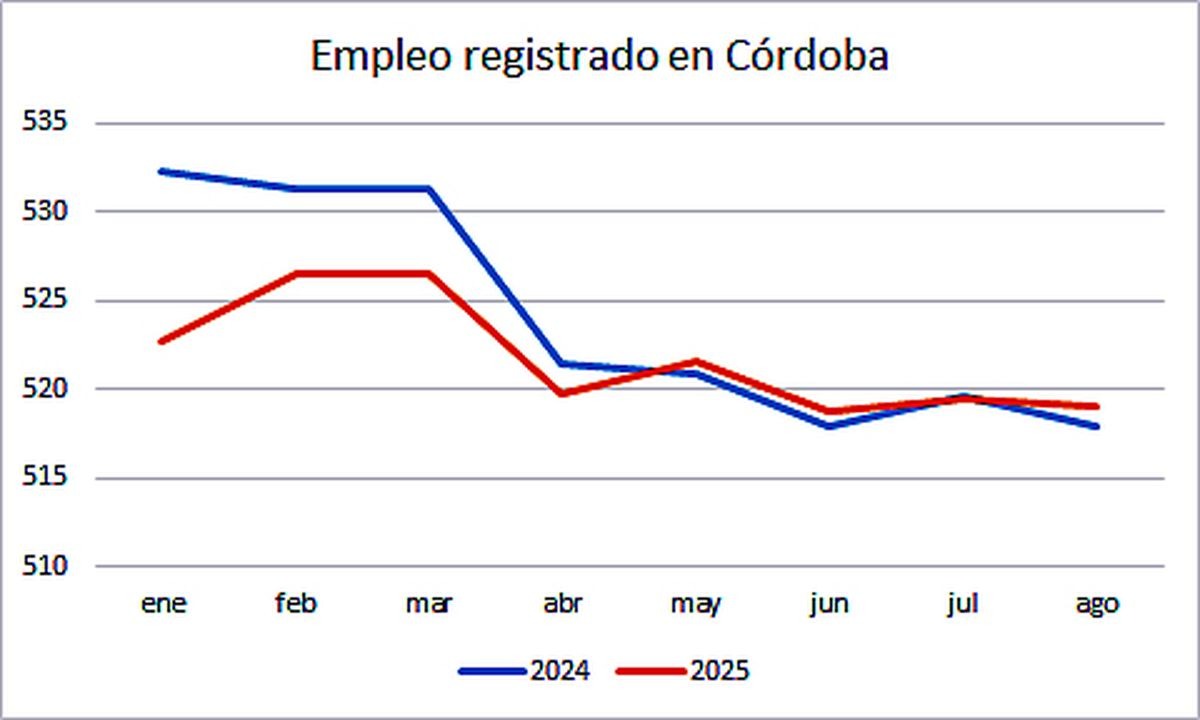 En la comparación interanual de los primeros ocho meses del año, Córdoba registró seis meses con caídas en el empleo, de las cuales cuatro fueron importantes, una moderada y una leve. La única mejora significativa se dio en agosto, cuando se recuperaron 1.200 puestos.