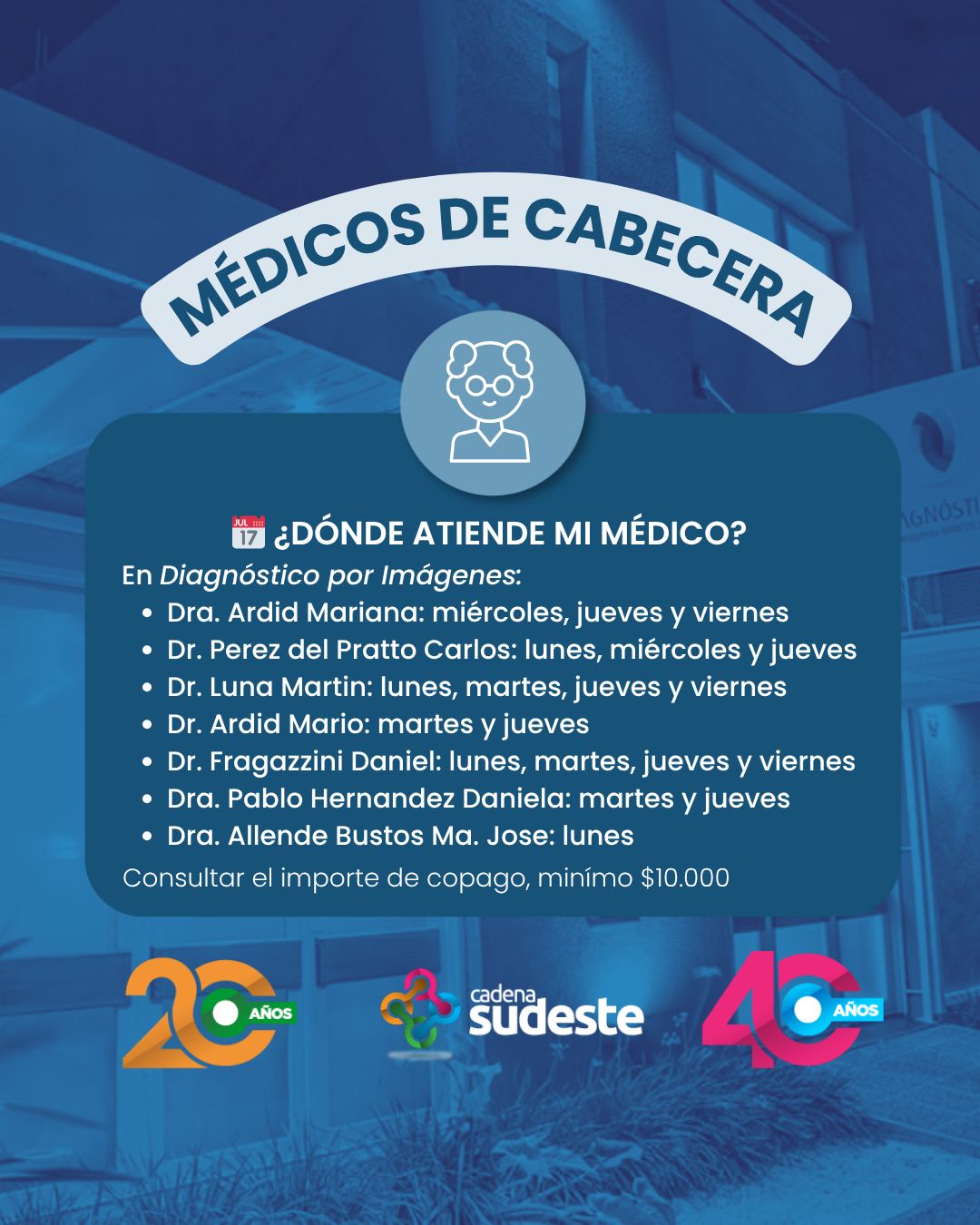 A su vez, otros profesionales lo hacen en el área de Diagnóstico por Imágenes, aunque se recomienda a los afiliados consultar previamente los días y horarios específicos de cada especialista.