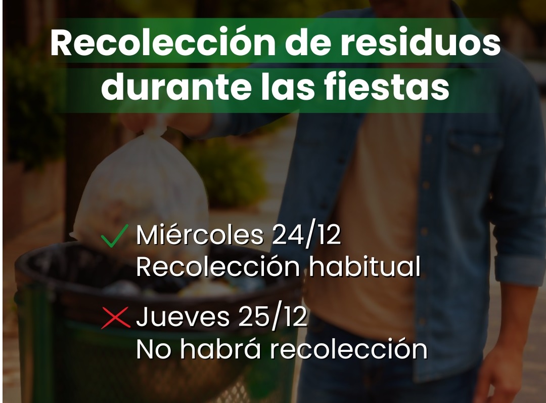 Con motivo de la celebración de la Navidad, la Secretaría de Servicios Urbanísticos dio a conocer un cronograma especial de recolección de residuos que regirá durante los días miércoles 24 y jueves 25 de diciembre, con el objetivo de organizar el servicio y mantener la limpieza en la ciudad durante el feriado.