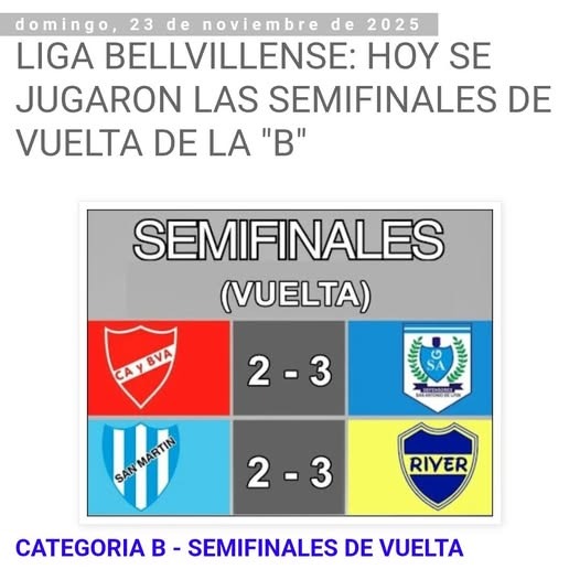 Liga Bellvillense B: River Plate y Defensores a la final mientras que la Villa y San Martín se quedaron en el camino