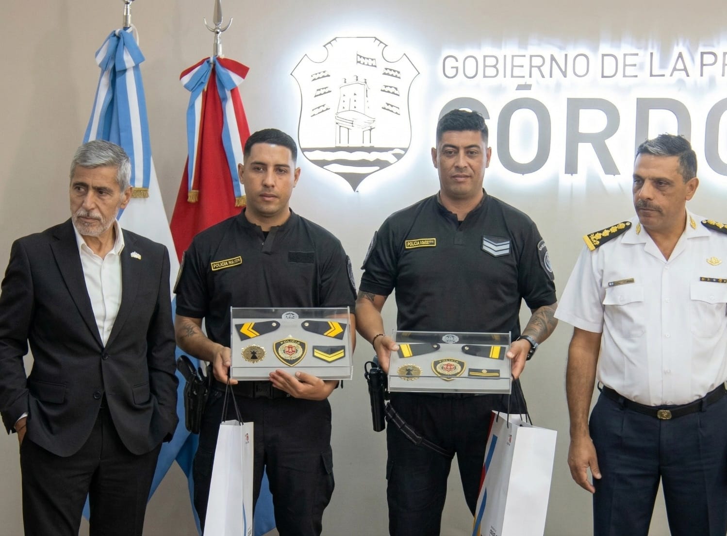 Los agentes Lucas Badra y Franco Cabrera fueron ascendidos por mérito extraordinario tras encontrar a la niña de dos años desaparecida en Cosquín.