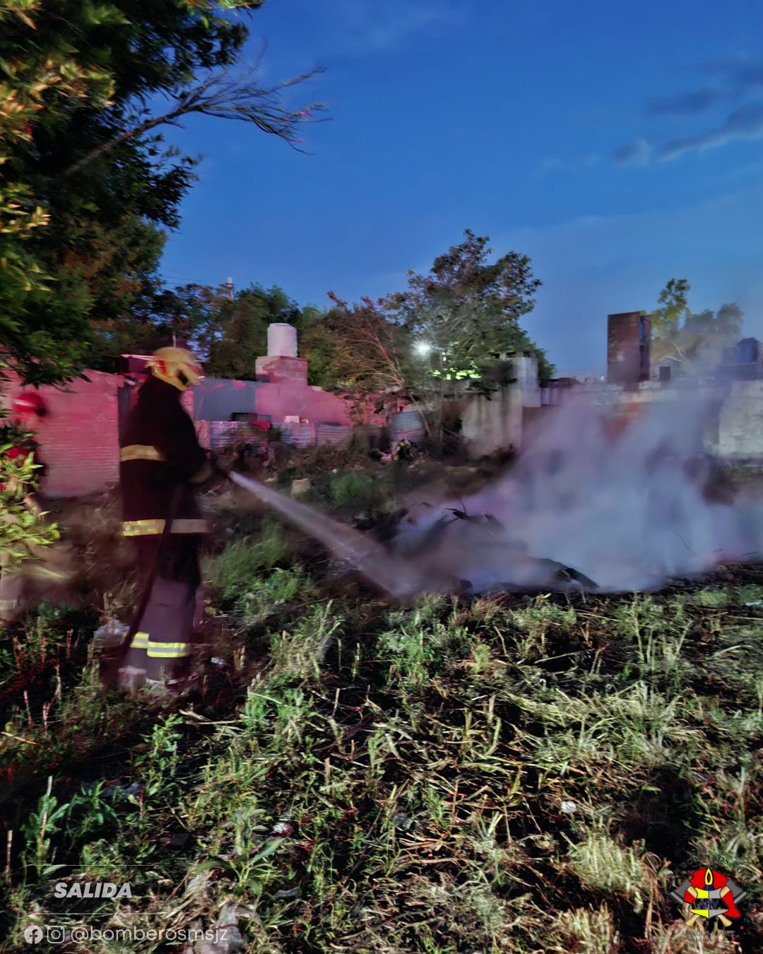 Se trabajó con una dotación en la extinción de un incendio de troncos y ramas acumulados en la vía pública. El foco ígneo fue rápidamente controlado, sin propagación ni afectación a estructuras cercanas.
