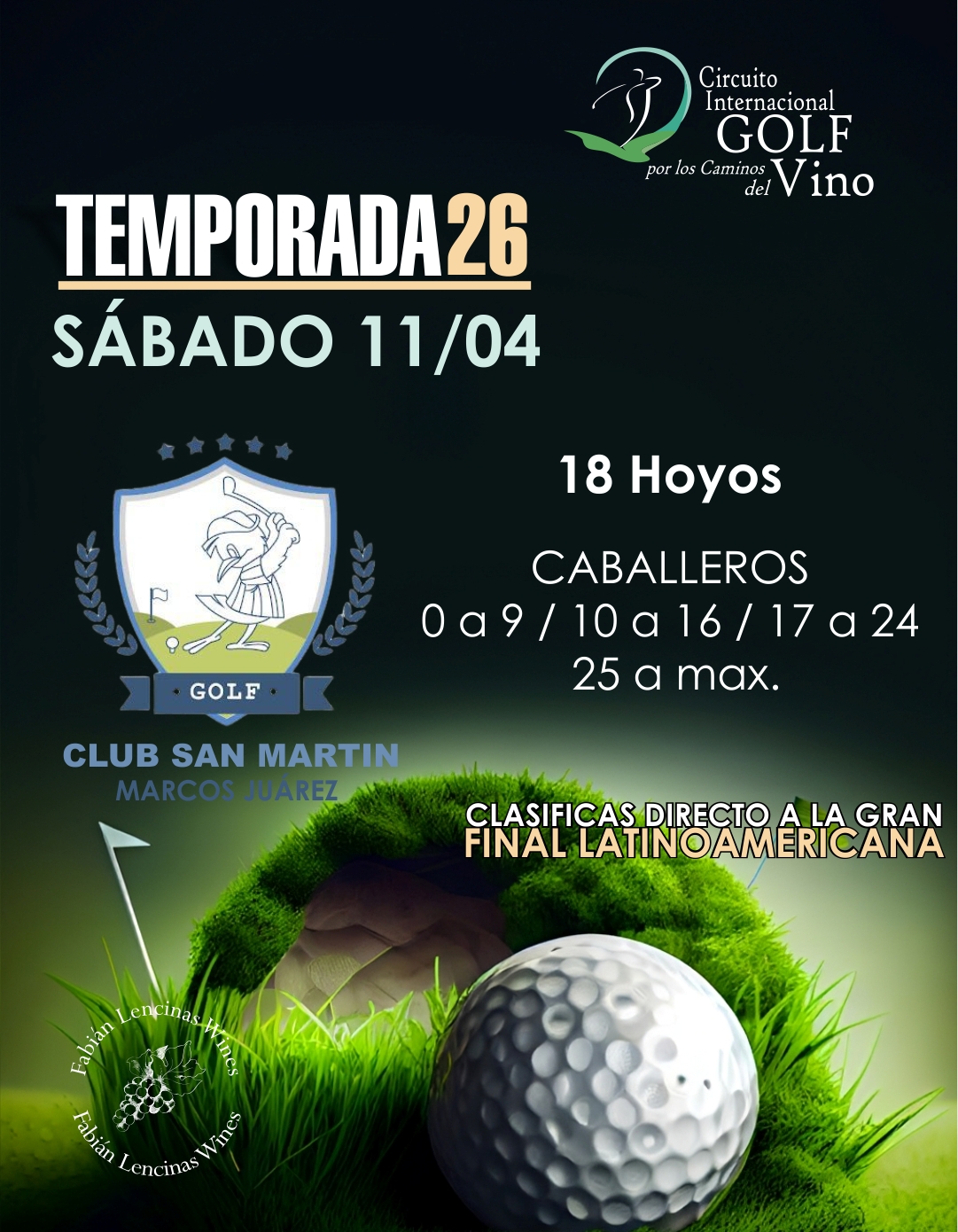 Este sábado 11 de abril, el Golf Club San Martín de Marcos Juárez se convertirá en el centro de atención regional con la inauguración de la temporada 2026 de golf, en el marco del prestigioso International Wine Tour, conocido en toda Latinoamérica como “Los Caminos del Vino”.