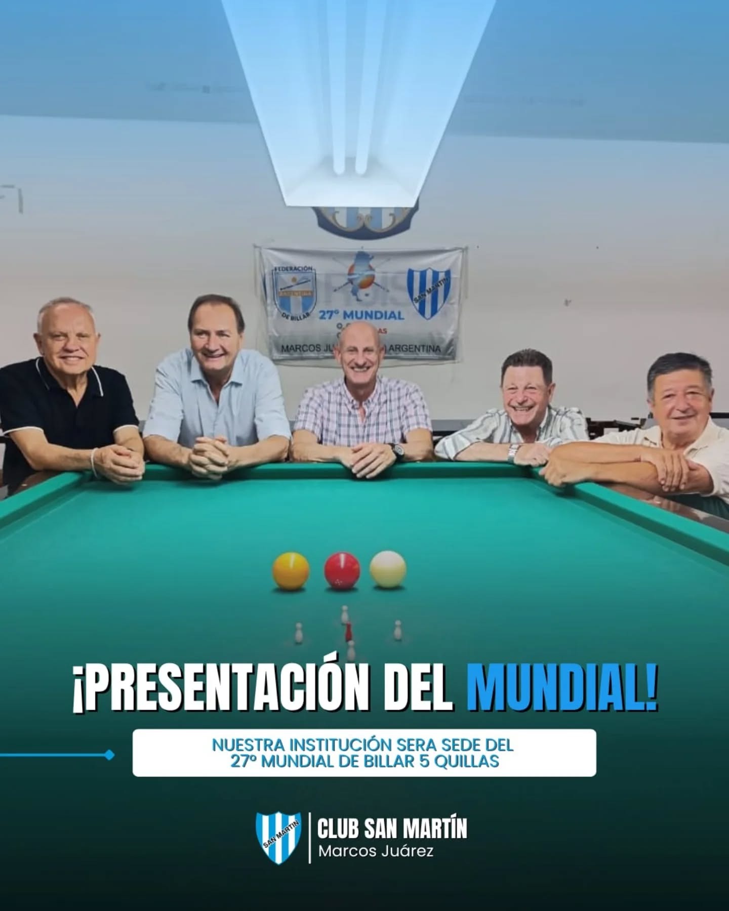 El pasado viernes se realizó en la sede albiceleste la presentación oficial del 27° Mundial de Billar 5 Quillas, con la presencia de autoridades nacionales e internacionales del billar y referentes institucionales.