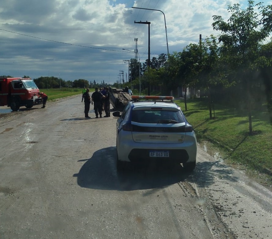 Un automóvil volcó tras impactar contra un poste en Marcos Juárez: el conductor sufrió lesiones leves